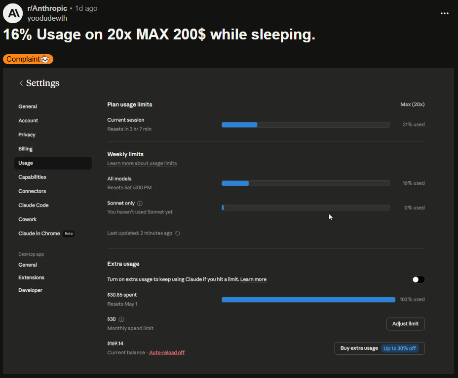 一个月付200美元的顶级订阅用户吐槽说,一个月30天,只有12天能用Claude。