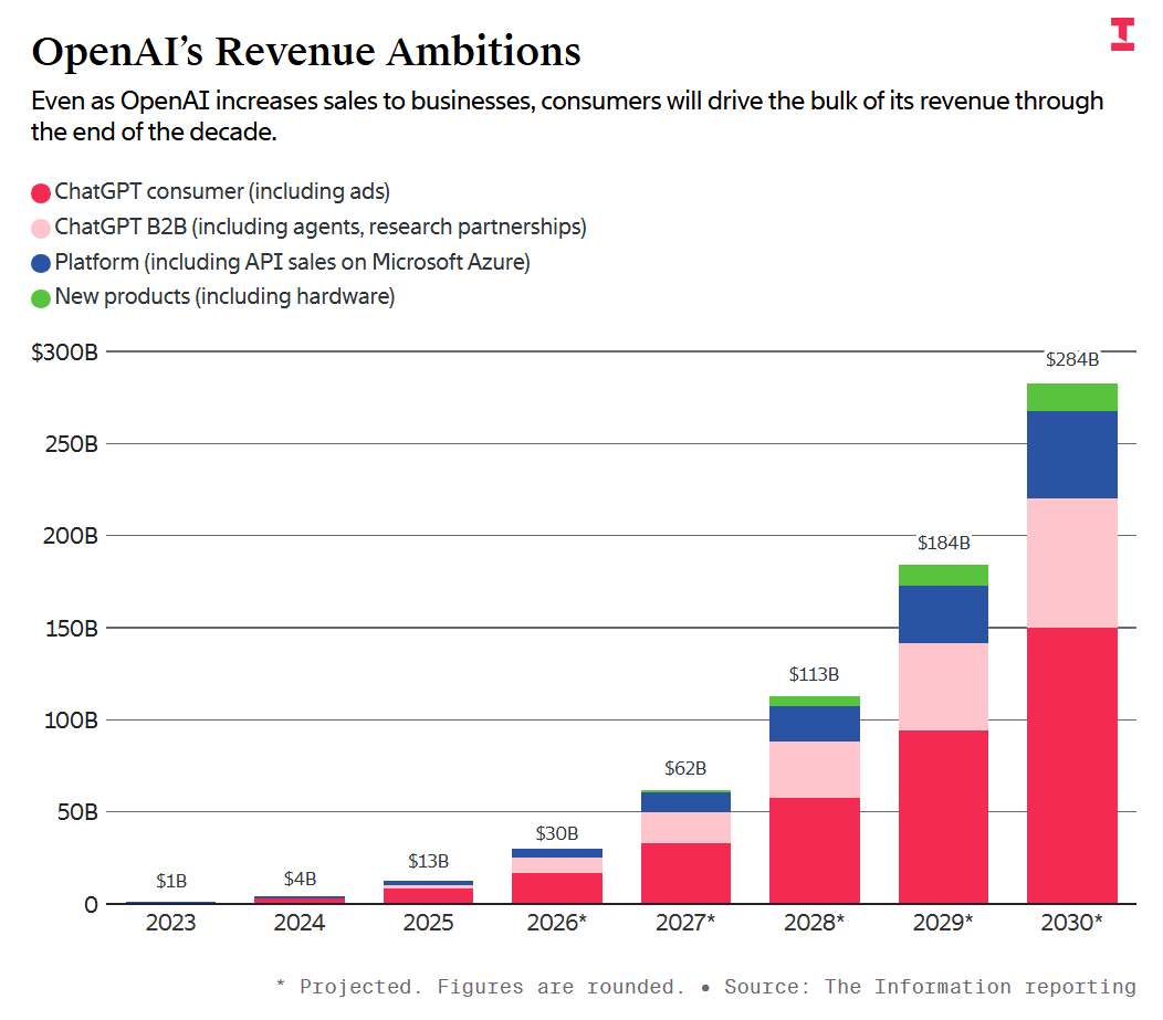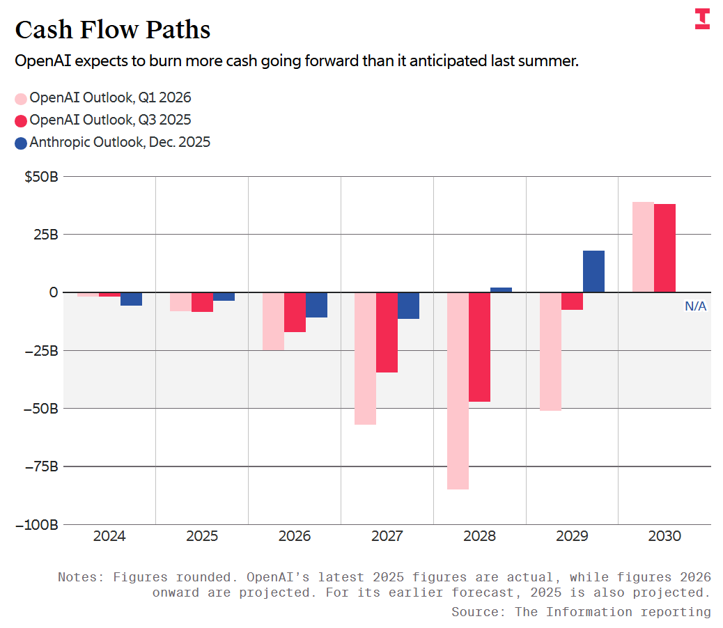 虽然OpenAI的年化收入有250亿美元,但有人2月份私下给投资人打过预防针,直到2030年,烧钱速度会是原先预期的两倍多。