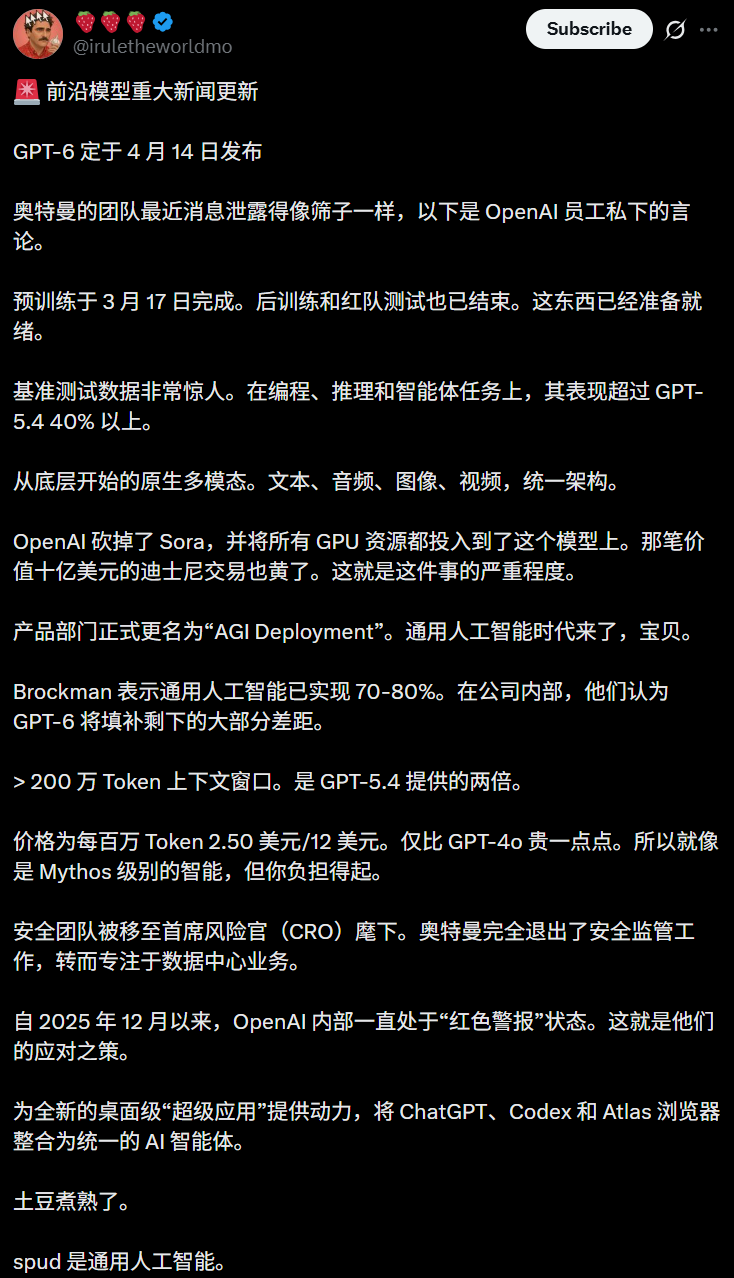 这样一来,GPT-6很可能先于Mythos发布!