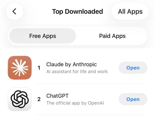今年一季度,Claude迎来了爆发式增长。2月底OpenAI签下五角大楼合同后,引发了用户大逃亡。ChatGPT一天之内卸载量暴涨295%,250万人参与QuitGPT运动,Claude一度登顶美国App Store下载榜第一。