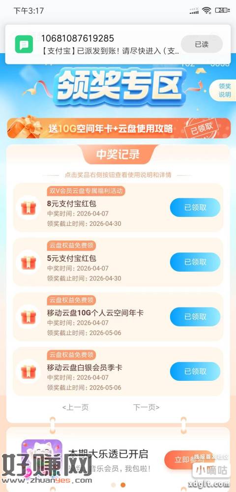 ZFB 双V会员 首月0元开通 可以随时退订 开通后去移动云盘搜双V会员领8云盘红包 不是每个号都有自己去看一下 我这号以前也开过但也有 开双v会员前去月月賺看一下有没有任务 有任务是开通双v会员领1.4转账红包