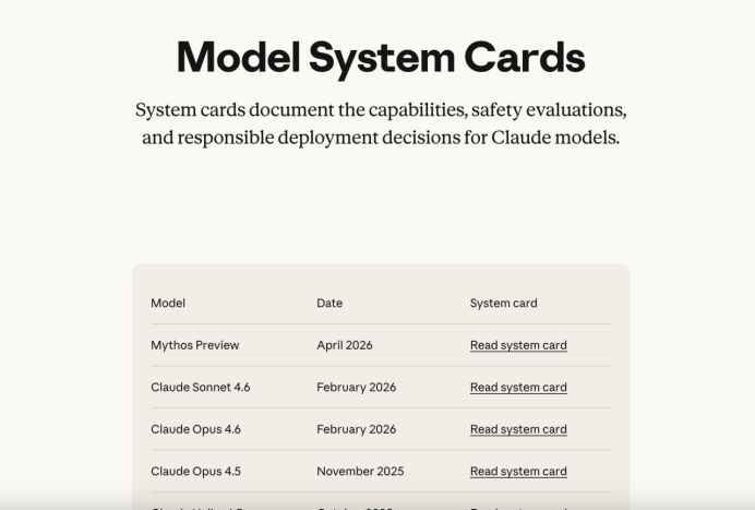 Anthropic每次发新模型,都会发一份详细的“系统卡(System Card)”。