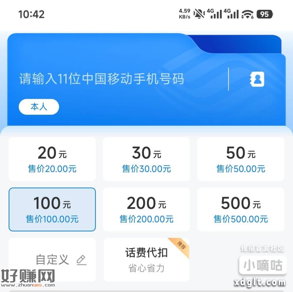 移动和包手机充值开通自动扣款100-10