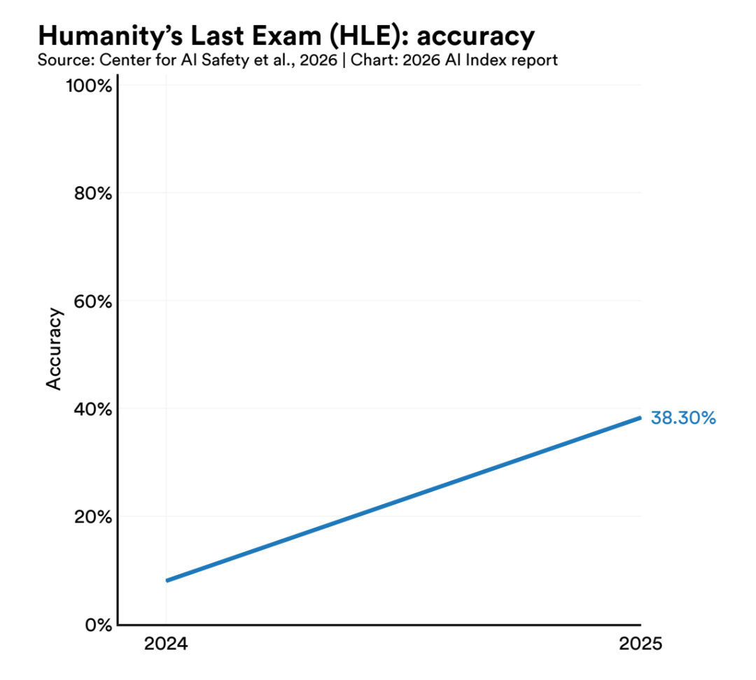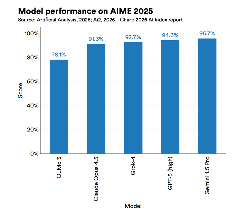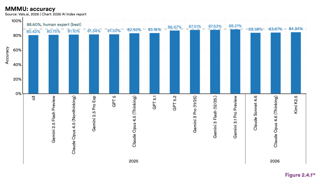 过去一年,全球超90%的顶尖模型,在博士级科学问题、多模态推理、竞赛数学上的表现,追平甚至超越了人类。