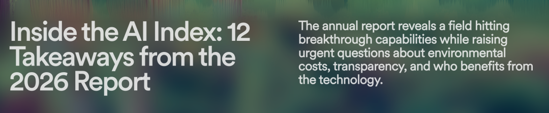 下面直接上干货,「2026年AI指数报告」最值得关注的12个硬核趋势。