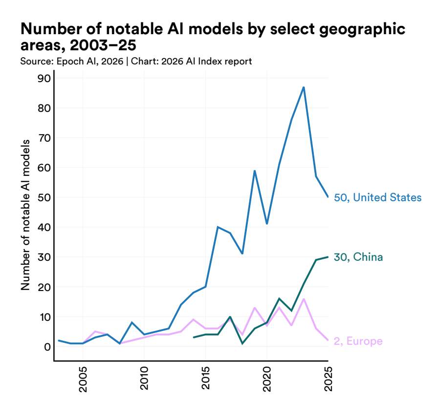 2025年美国发布了50个「显著模型」,中国紧跟着也发布了30个顶尖大模型。