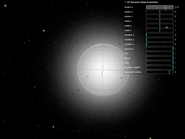 「全局排序」听起来平平无奇,实则是让多个 3DGS 对象共存于同一场景、不互相穿模的关键所在。Spark 还在此基础上开放了一套 GPU 处理流水线,用户可以对每个 splat 做重新上色、透明度调整、动态动画等自定义操作,用 GLSL 编写,或者像 Blender 那样连节点图来实现。