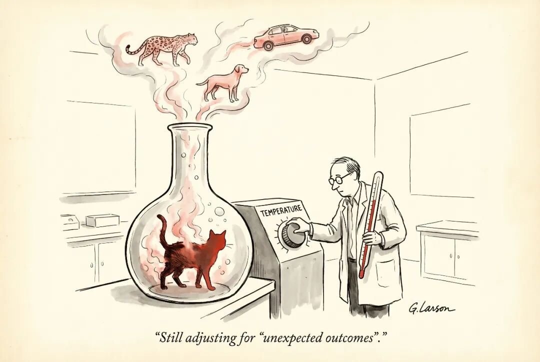 所以你看到了吗?Hinton 做的不只是给一个技术操作换了个名字。他构建了一整套隐喻:有温度、有加热、有显现、有纯化。升高温度,让隐藏的知识结构从黑暗中浮现,然后把它转移到一个新的、更小的容器里。这已经是在用化学过程,来形成 AI 工程。