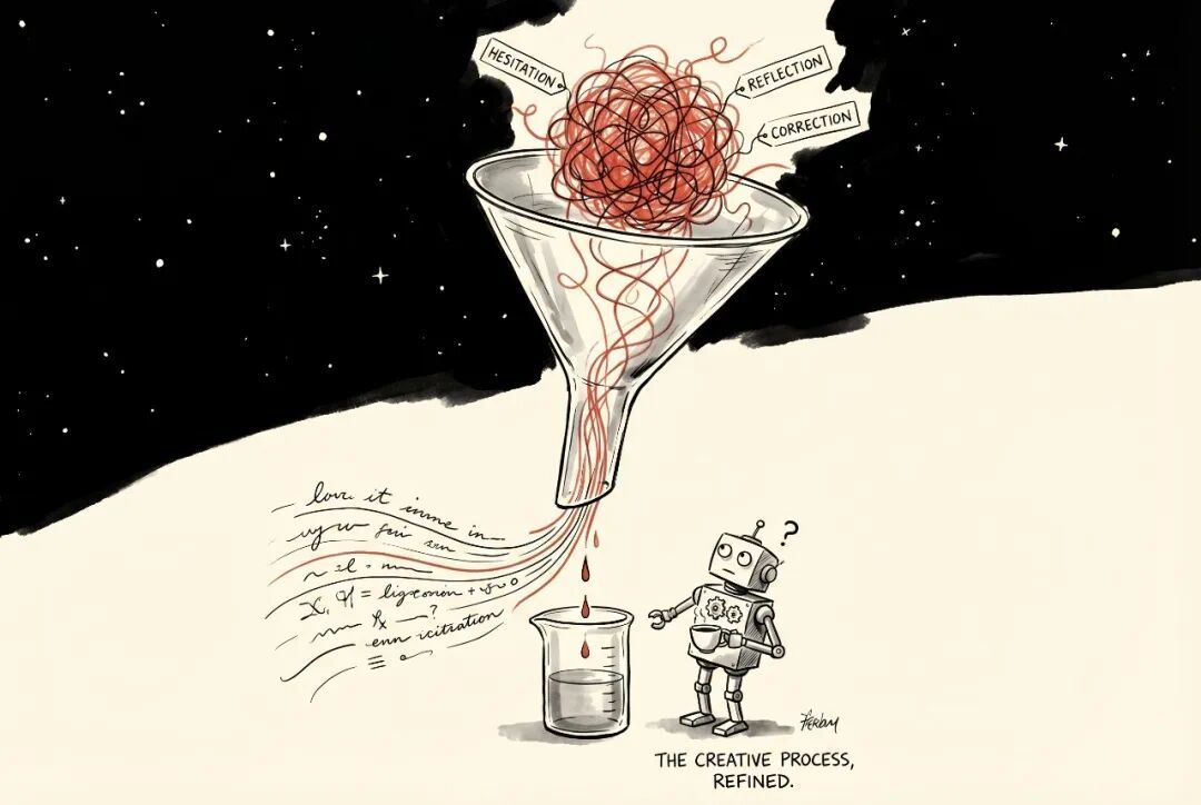 你蒸馏一个概率分布,那是在搬运数据,你蒸馏一个推理轨迹——怎么犹豫、怎么反思、怎么推翻自己——这跟「提取一个人的决策方式」还有什么本质区别?