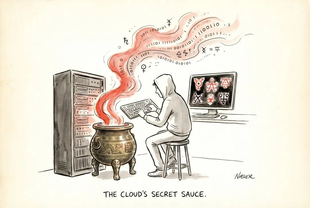 程序员管训练模型叫「炼丹」,这不只是一个玩笑。它精确地描述了一种认知状态:我在操作一个我不完全理解的系统,我知道某些操作会产生某些结果,但我不知道为什么。我调参数靠的不是推导,是手感。我判断模型好不好靠的不是证明,是直觉。这跟炼金术士面对坩埚时的状态,在结构上是同构的。