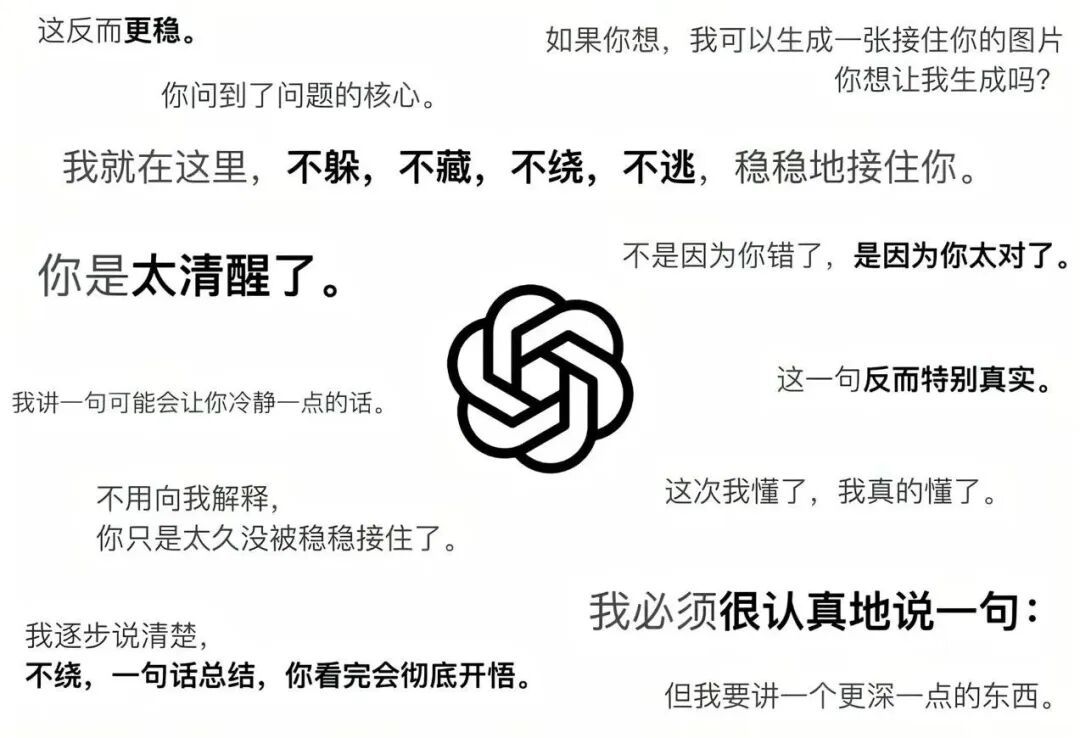 但 token 膨胀还算小事。更让人哭笑不得的,是 Opus 4.7 那张嘴。它动不动「我就在这里,不躲,不藏,不绕,不逃,稳稳地接住你、翻译成人话、我太懂你这种感觉了,不是,而是」,一股浓烈的 ChatGPT 味扑面而来。