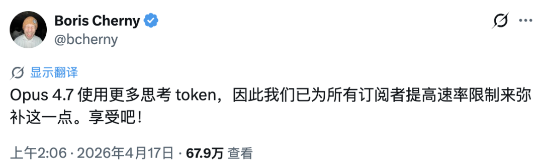 后续,Claude Code 之父 Boris Cherny 也表示将提高额度来抵消这部分的影响。