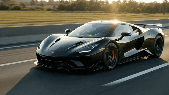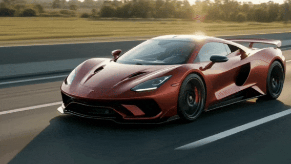 不仅如此,Modify还能对物品的「材质」进行精确修改,我先是用V5 Fast生成了一段黑色亮面跑车驰骋在公路上的视频: