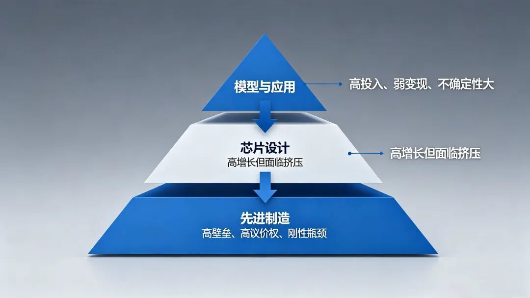 当前AI产业链已形成清晰的三层结构,各环节风险、收益与话语权发生根本性改变。
