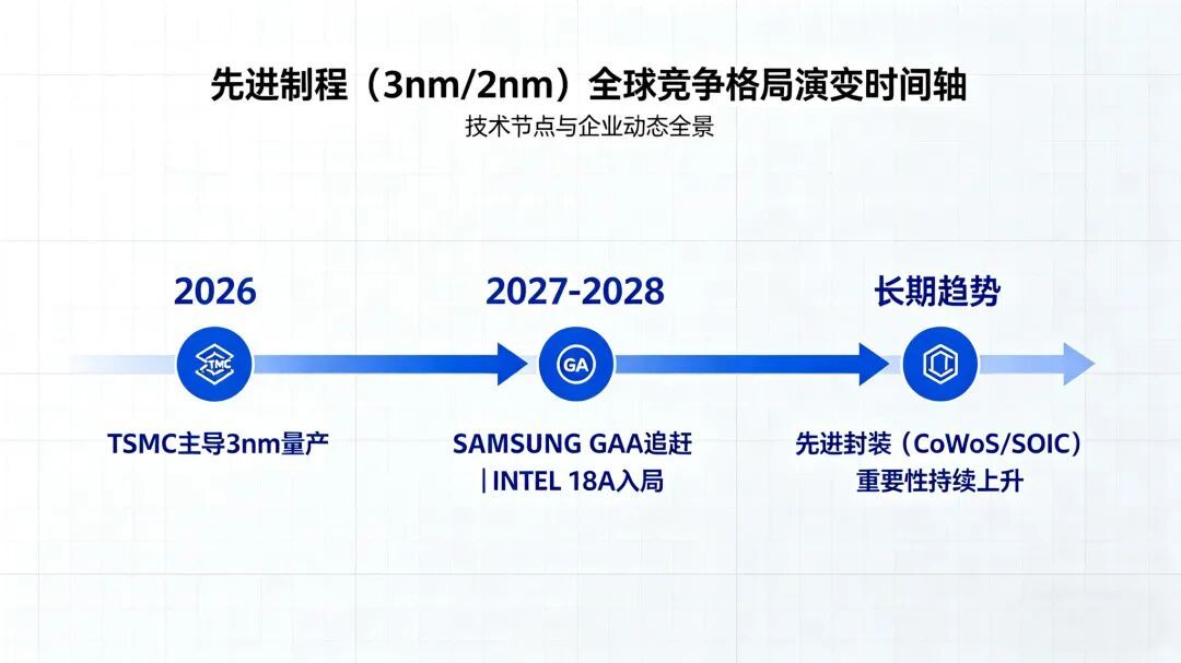 三星通过GAA制程在3纳米与2纳米路线持续追赶,英特尔依托IFS代工业务与美国政策支持重返先进制程赛道,叠加各国扶持本土半导体制造,全球先进制程供给格局将从“一强独大”逐步走向“多极竞争”。