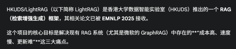 我选的项目是GitHub上最近星数非常高的项目,叫做LightRAG。这是通过整合图结构来增强上下文感知和高效信息检索,从而改进检索增强生成,实现了更高的准确性和更快的响应时间。项目地址https://file.tonglife.net/images/cc/1f6ac7ca5fd31fbd67757c1d483be8.jpg