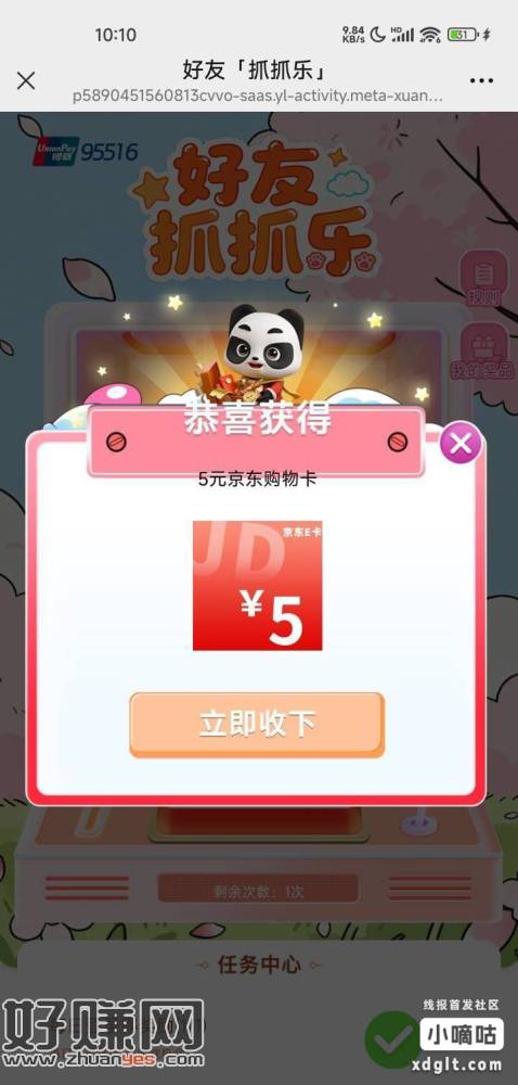 银联抓抓乐,二维码没头,活动有点卡,无聊的去玩一下吧,中奖概率低,多v,看运气