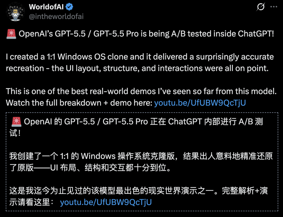 在ChatGPT中,OpenAI似乎已经开始了GPT-5.5的灰度测试。
