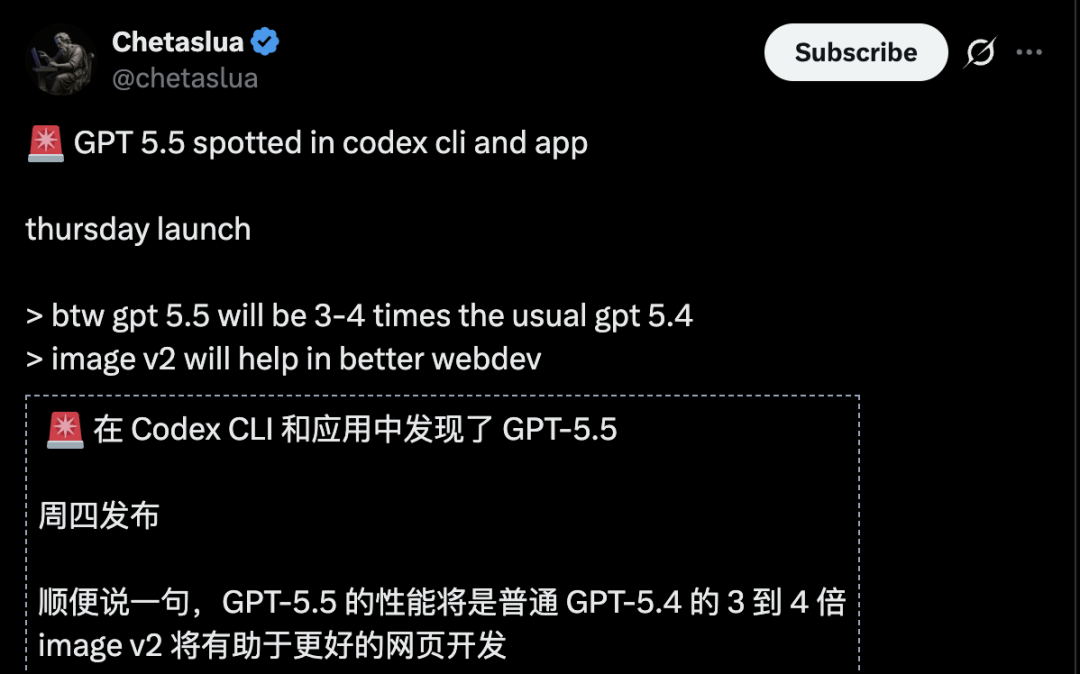 而奥特曼最近还暗示过,GPT-5.5本周四就要发布。这炒作能力是无人能及的。