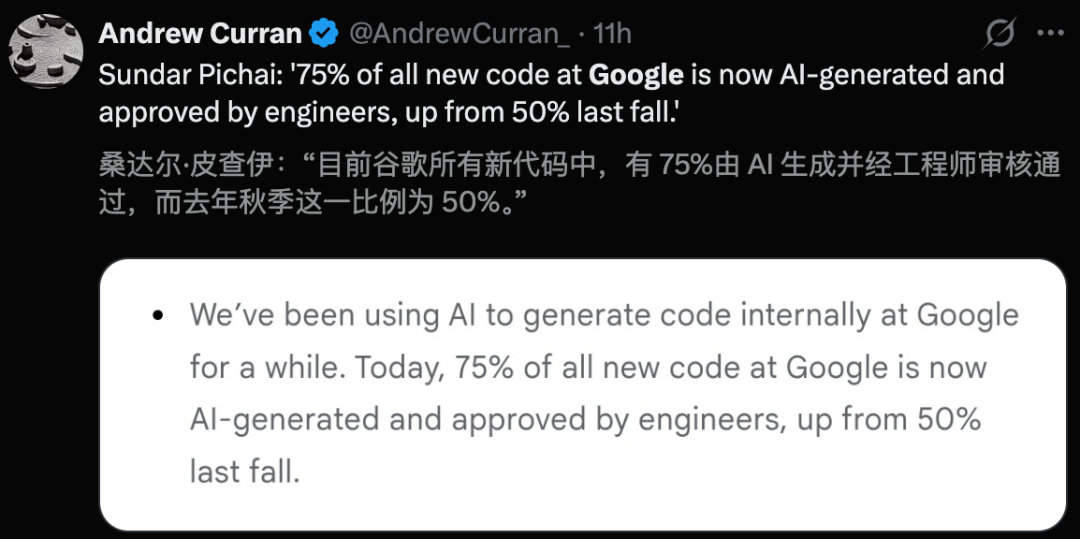 75%谷歌新代码,全是AI写的