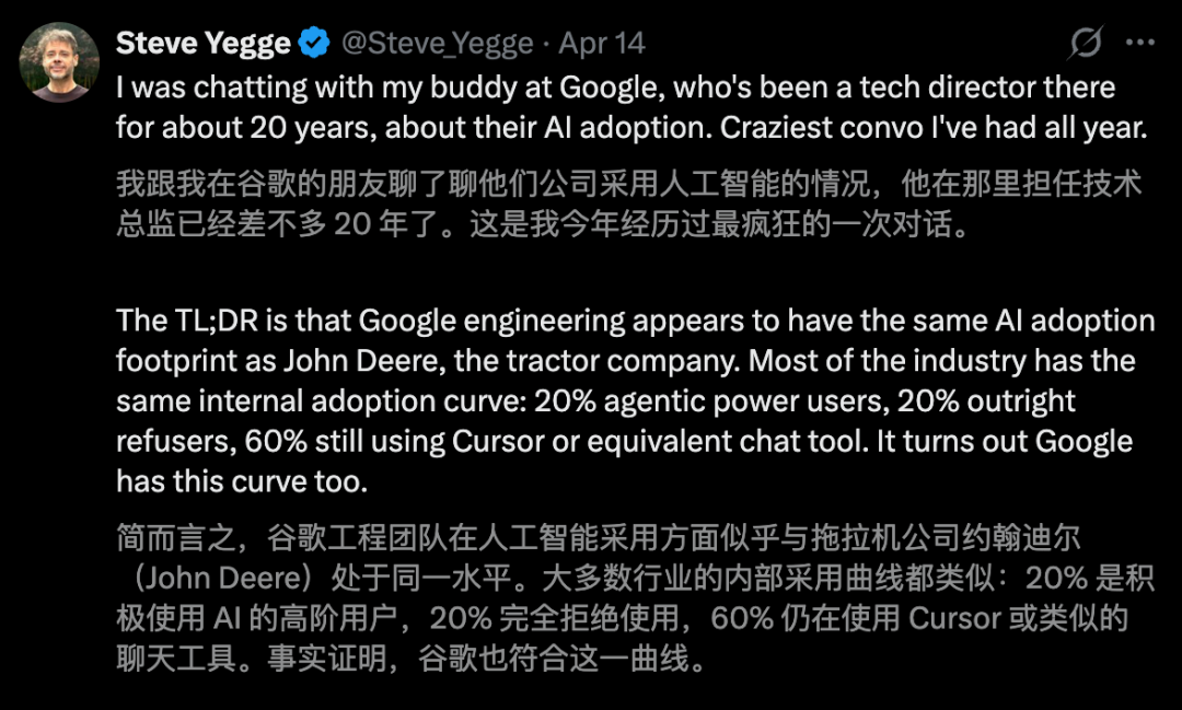 而且,谷歌内部已不满足于「AI辅助写代码」了。