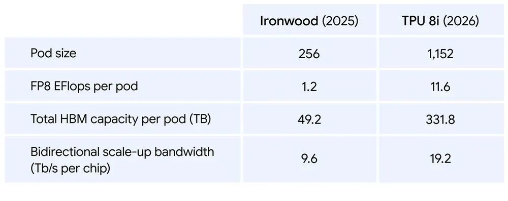 它在每个Pod的计算性能,几乎是上一代Ironwood的3倍。