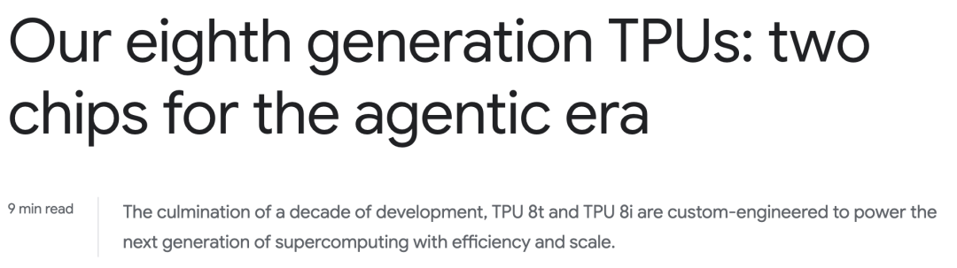 它首次采用训练(TPU 8t)与推理(TPU 8i)双芯片,性能狂飙3倍,大幅降低了Agent运行成本。