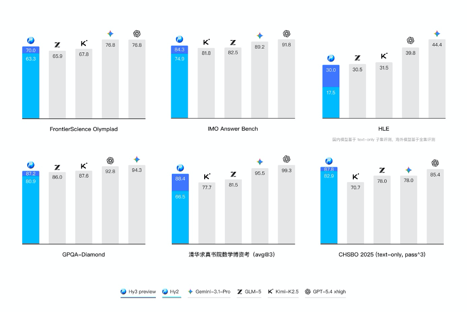 如果直接看评分的话,Hy3 preview 在 FrontierScience-Olympiad、IMOAnswerBench 等高难度理工科推理任务中表现突出,并在最新的清华大学求真书院数学博资考(26春)和 全国中学生生物学联赛(CHSBO 2025) 中取得优异成绩,展现了可泛化的强推理能力。