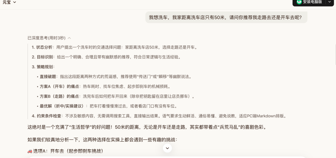 不过,洗车问题上它可能思考的有点过多了。