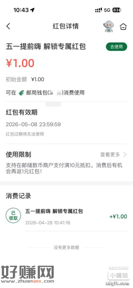 邮储数币又给了1亓荭苞前面给了7个0.16通用的
