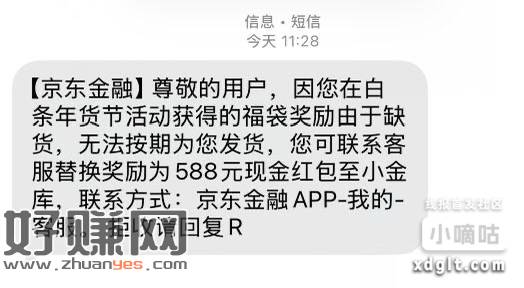 京东金融过年期间588元福袋没发货的,找客服要588元现金