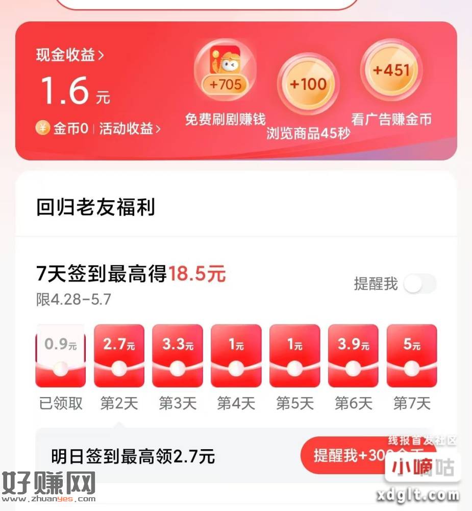 今日头条极速版长期没登录的(30天以上等)登录送0.7签到7天送18.5(4.28-5.7之间)黑号签到都是金币忽略
