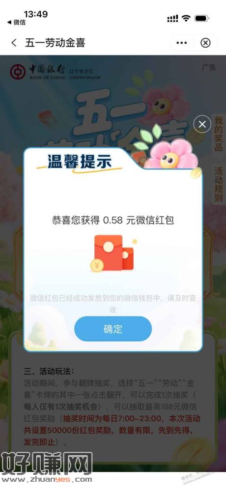 中行扫码领红包 有水
