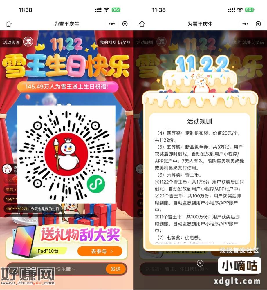 【蜜雪冰城雪王币抽3万份免单券】微信打开活动->每11雪王币抽一次,有3万份免单券 和 1万份1111雪王币mp://bfSsgB5JDhbyx2G