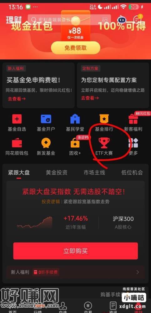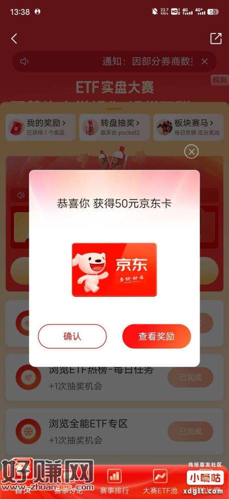 同花顺app 登录任意一家证券账户,然后点理财,然后点etf大赛,然后转盘抽奖,完成任务抽,积分也能兑换次数,不必中,好运上。