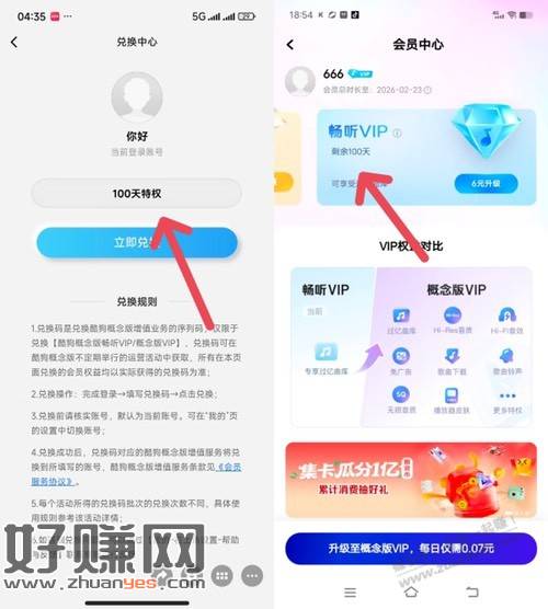 酷狗概念版app,搜:100天特权新用户直接领100天会员,不是新用户换个手机号登录和qq音乐酷狗音乐同曲库