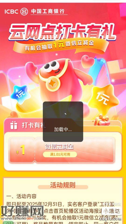 多v速去,现在不卡。刚拿7,得看到领取成功啊,别没看到退出领取失败了重卡,我刚才就是这样,卡,火爆就一直弄,反复刷新进,我是进去后一直点。我是7号号花了16分,第一号到3号花的时间长了,后面基本就1分一个,出现火爆字就重进刷新,转圈就千万别重进刷新。#小程序://工行服务/a17UNndVOijiNuw
