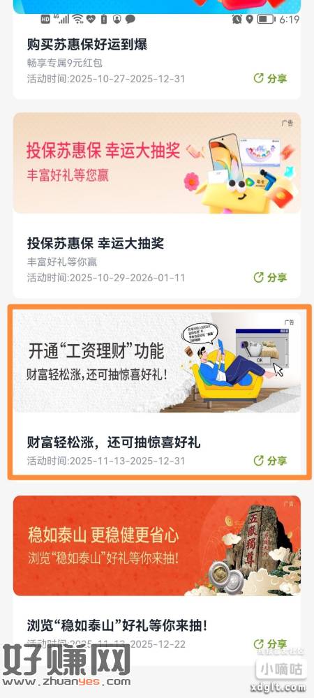 刚有人发了条苏州银行的线报,还有另外一个活动:精彩活动专区拉到最下面,倒数第二个-工资理财签约有礼,去抽实物,刚中了蓝牙耳机!