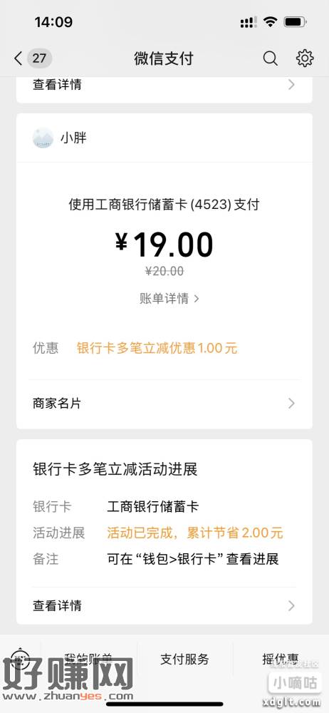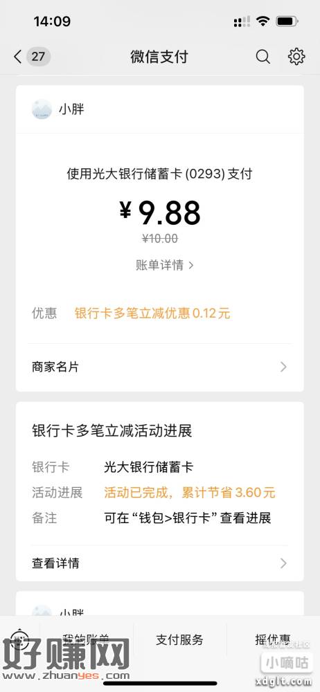 微信小号银行卡报名立减活动,小号有,刚才又减了5.6元