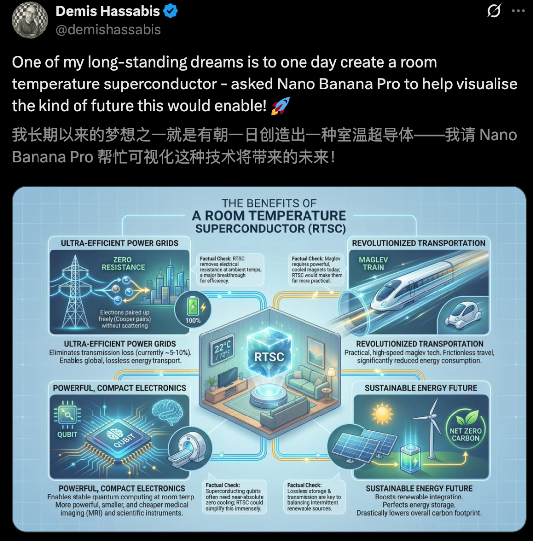Hassabis称自己长期以来梦想之一,是创造出室温超导体。