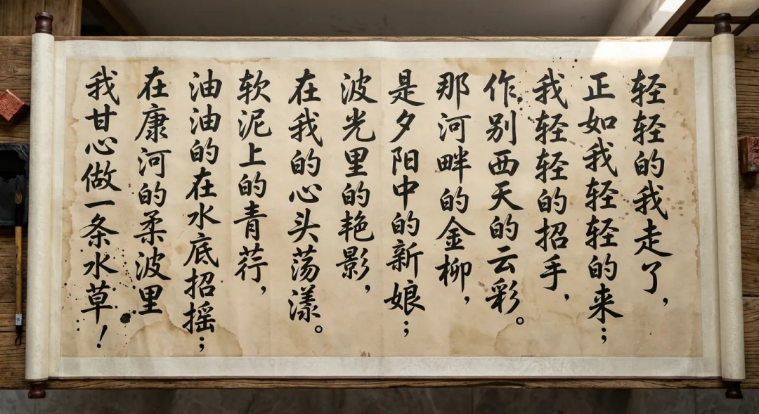 一句鸡汤、一句古诗,甚至是一大段文言文,Nano Banana Pro一键直出颇有意境的图片,而且手写汉字完美到几乎没有一点瑕疵。