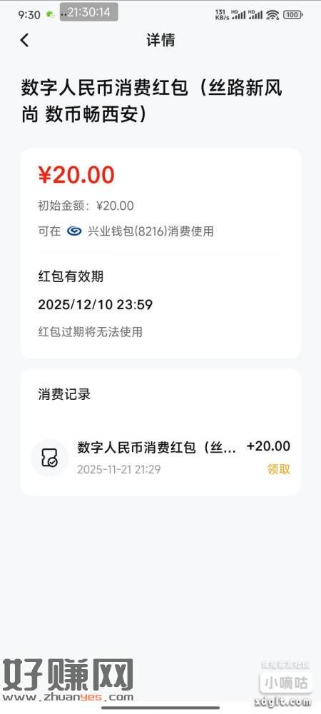 老哥们,白天的兴业20数币到账了,用自己的商家码t