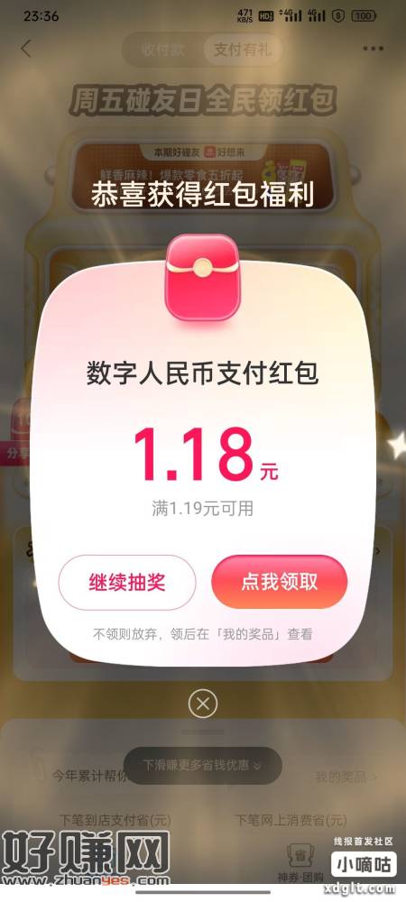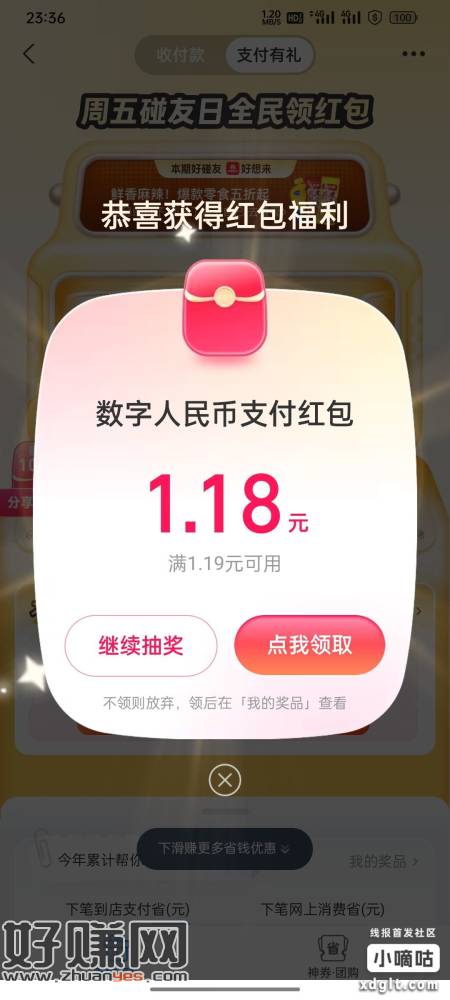 ZFB支付有礼下拉抽奖刚中1.6+1.18