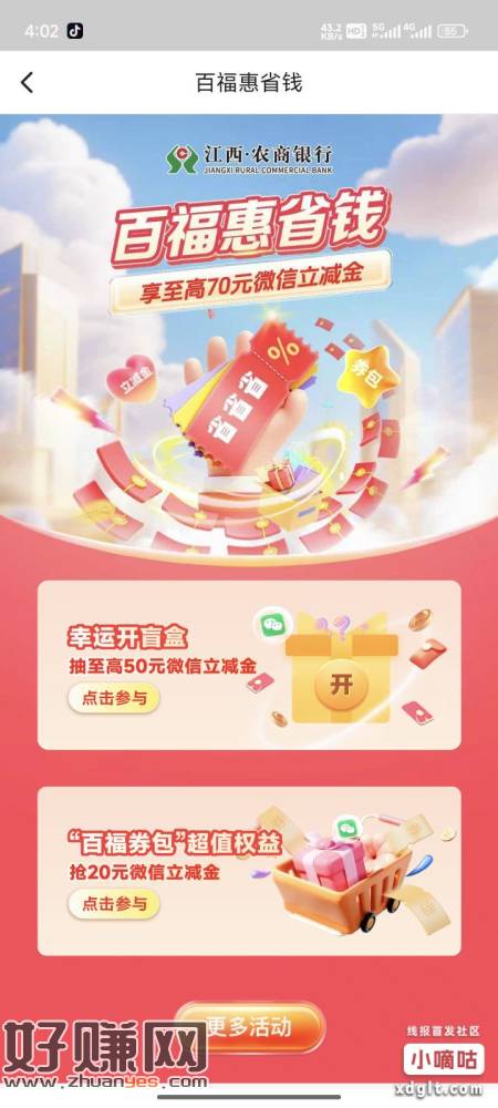 江西农商银行,百惠省钱两个活动,盲盒5买3次抽3次看脸15买20可以三次只能江西的