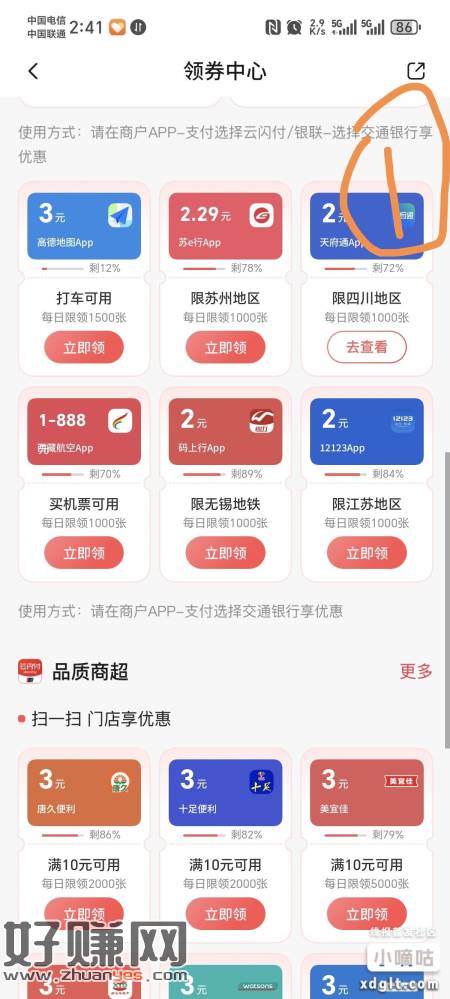 交通银行四川活动,交通银行领券中心领10-2搭配天府通APP电子卡首单10-3,润4,可以玩两个月再提具体步骤如图所示