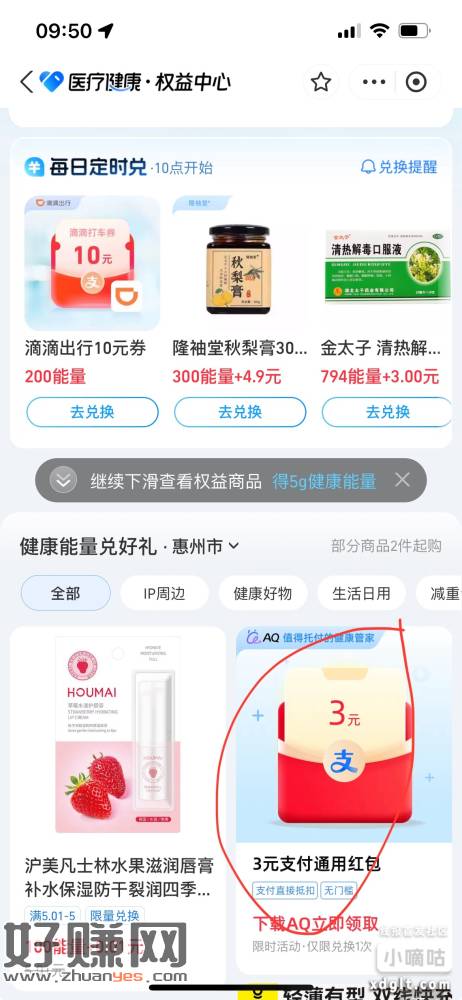 zfb搜索:悦动健康岛-右下角权益兑换-下载软件,认实名,没做过的可以去做