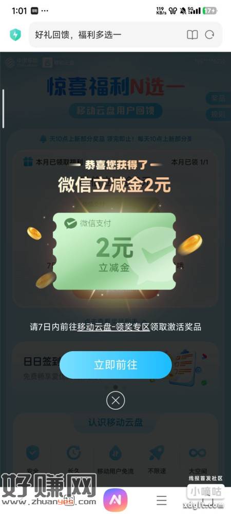 https://m.mcloud.139.com/portal/ ... ckNew?enableShare=1移动云盘又可以领了