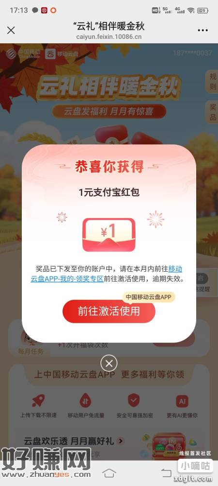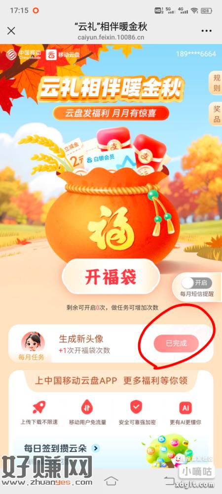 https://caiyun.feixin.10086.cn:7 ... nal_AnnualRewarding移动云盘开福袋,概率中1