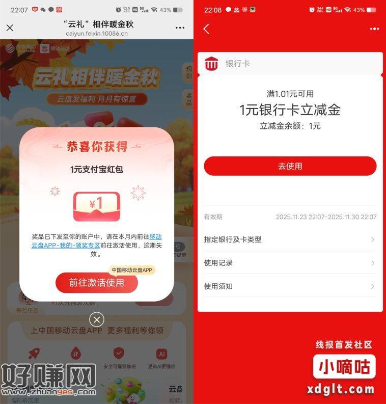 活动打开:https://caiyun.feixin.10086.cn:7 ... nal_AnnualRewarding