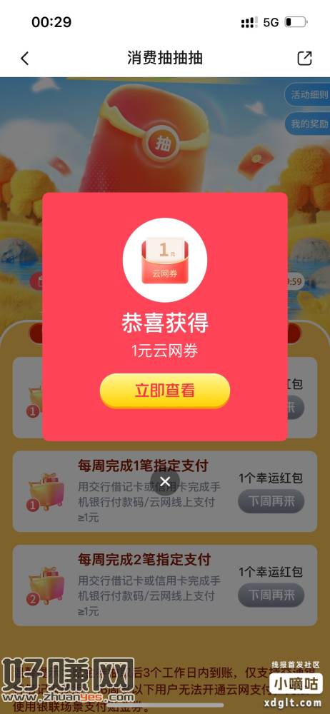 交行搜索消费达标有奖,三个任务都完成,有水得3元支付券